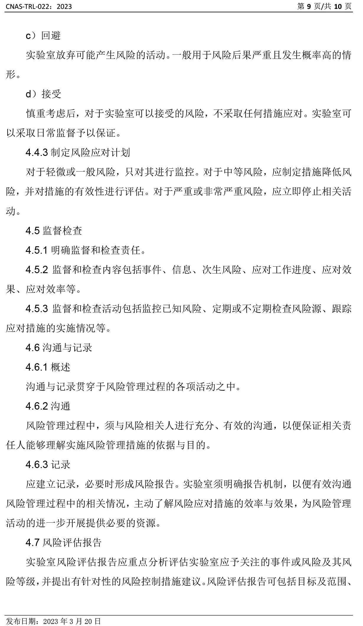 近日,中國合格評定國家認(rèn)可委員會(CNAS)發(fā)布通知,CNAS秘書處編制了CNAS-TRL-022:2023《實(shí)驗(yàn)室風(fēng)險(xiǎn)管理指南》,現(xiàn)予以發(fā)布,文件自發(fā)布之日起立即生效。詳情如下: