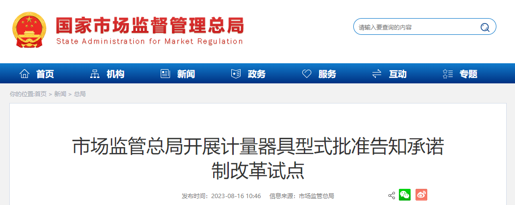 市場監(jiān)管總局開展計(jì)量器具型式批準(zhǔn)告知承諾制改革試點(diǎn) 為進(jìn)一步深化“放管服”改革,提高行政審批效率,優(yōu)化營商環(huán)境,激發(fā)市場主體活力,切實(shí)解決計(jì)量器具型式批準(zhǔn)審批