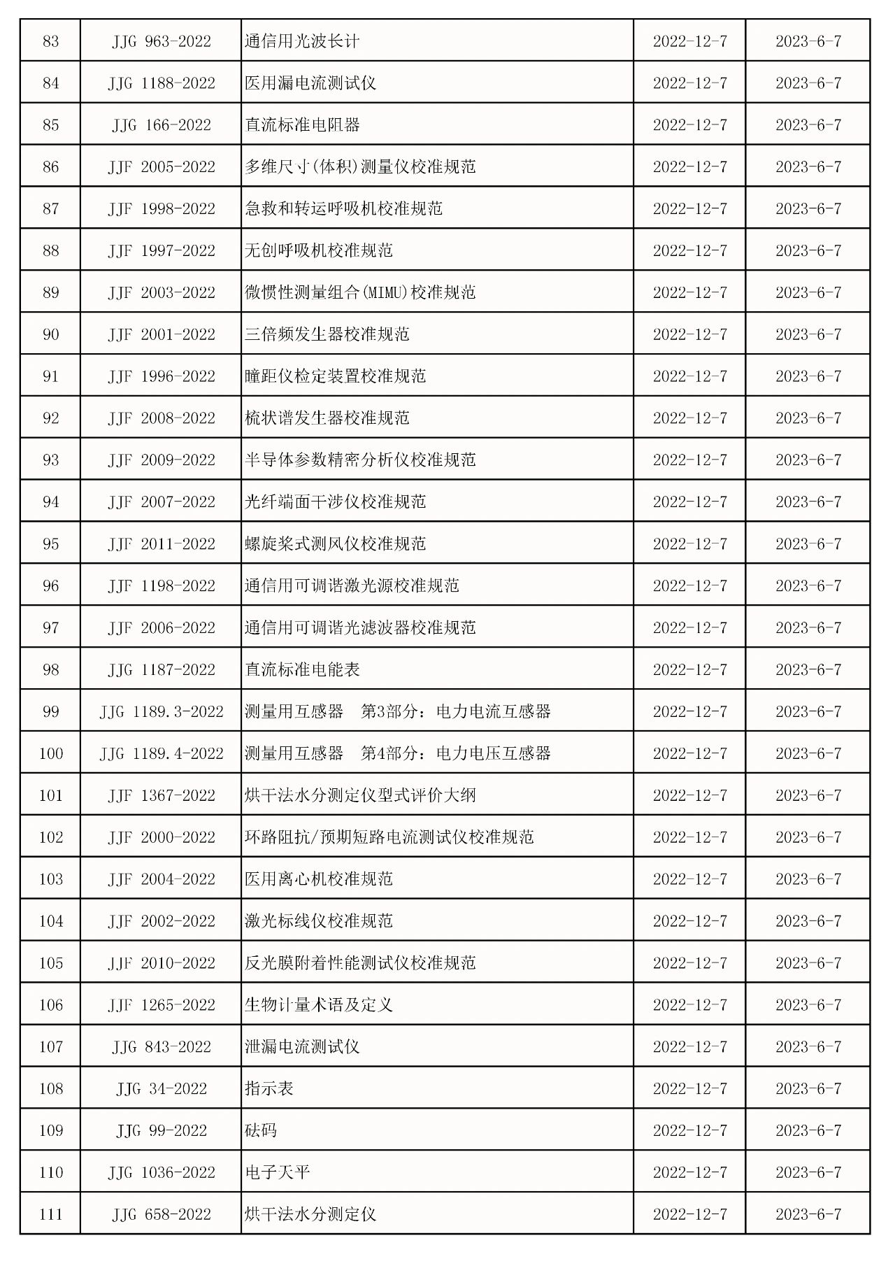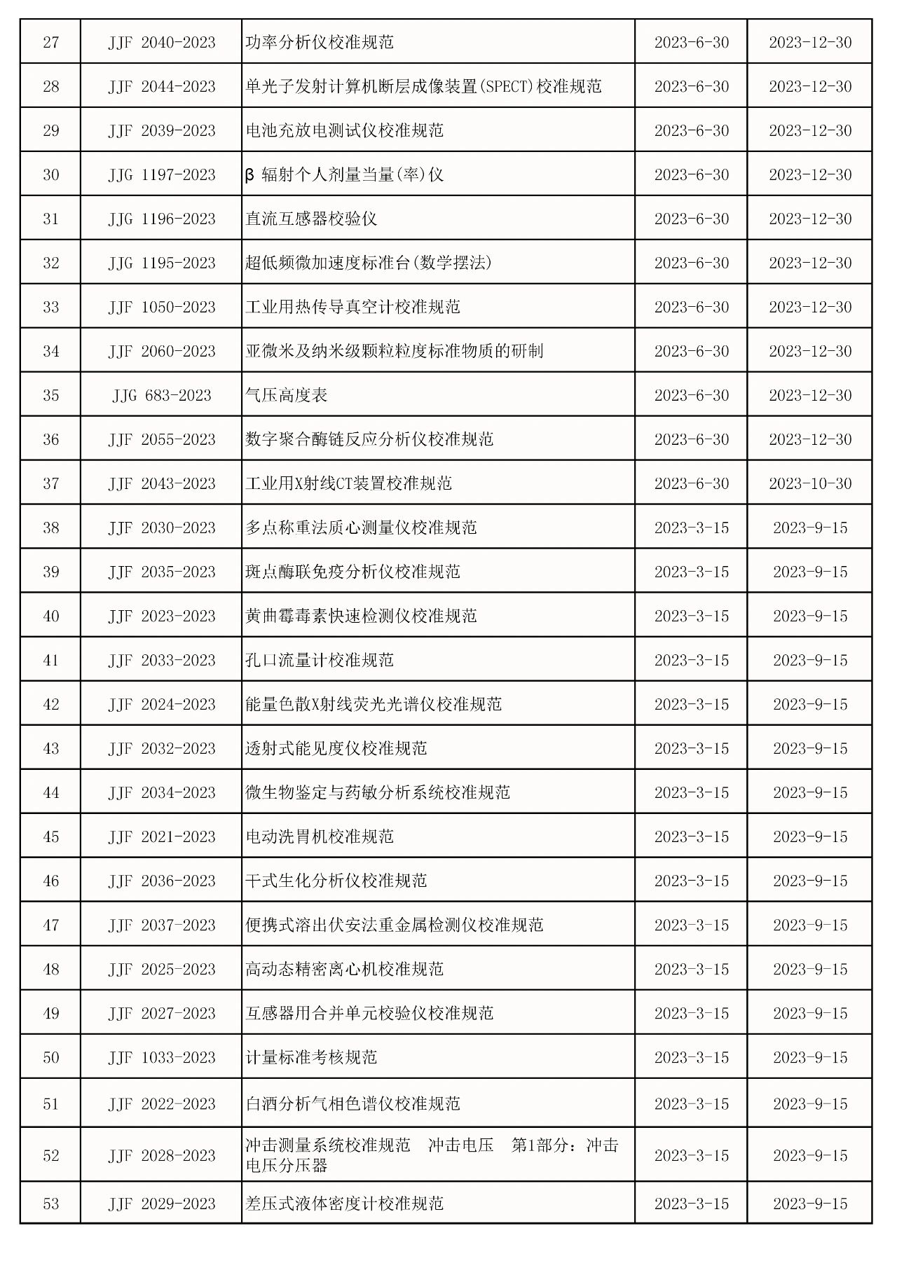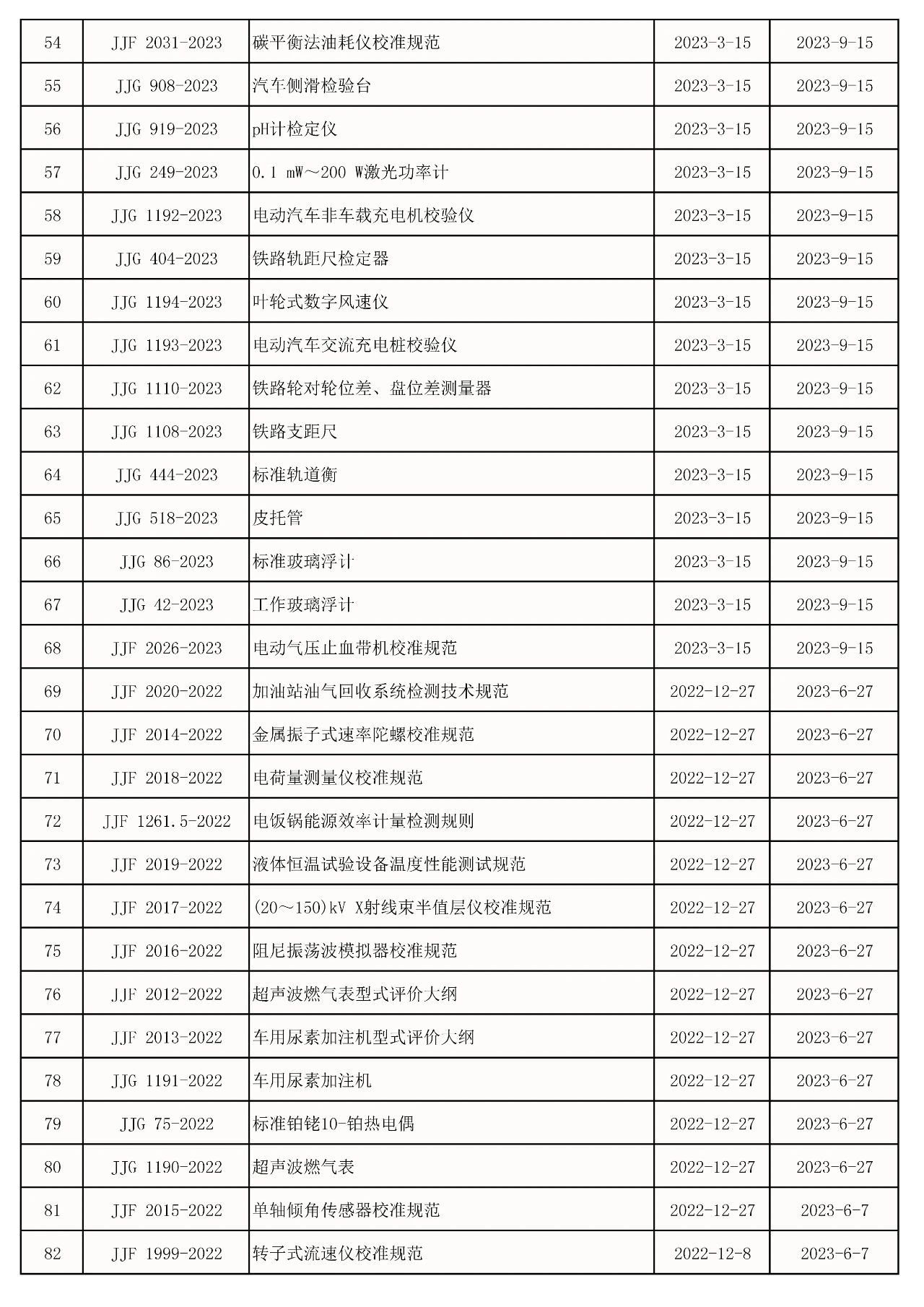 2023年實(shí)施的國(guó)家計(jì)量技術(shù)規(guī)范匯總