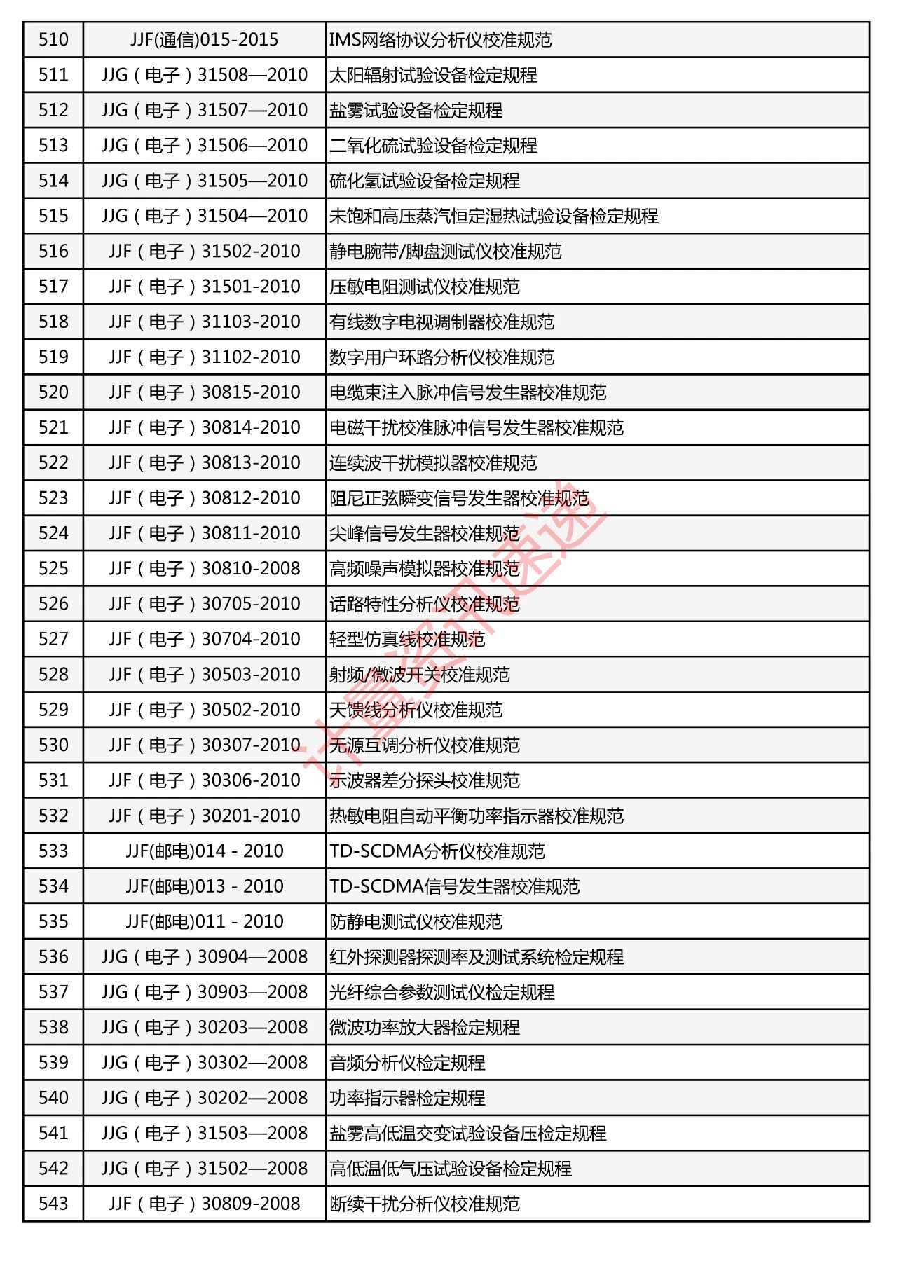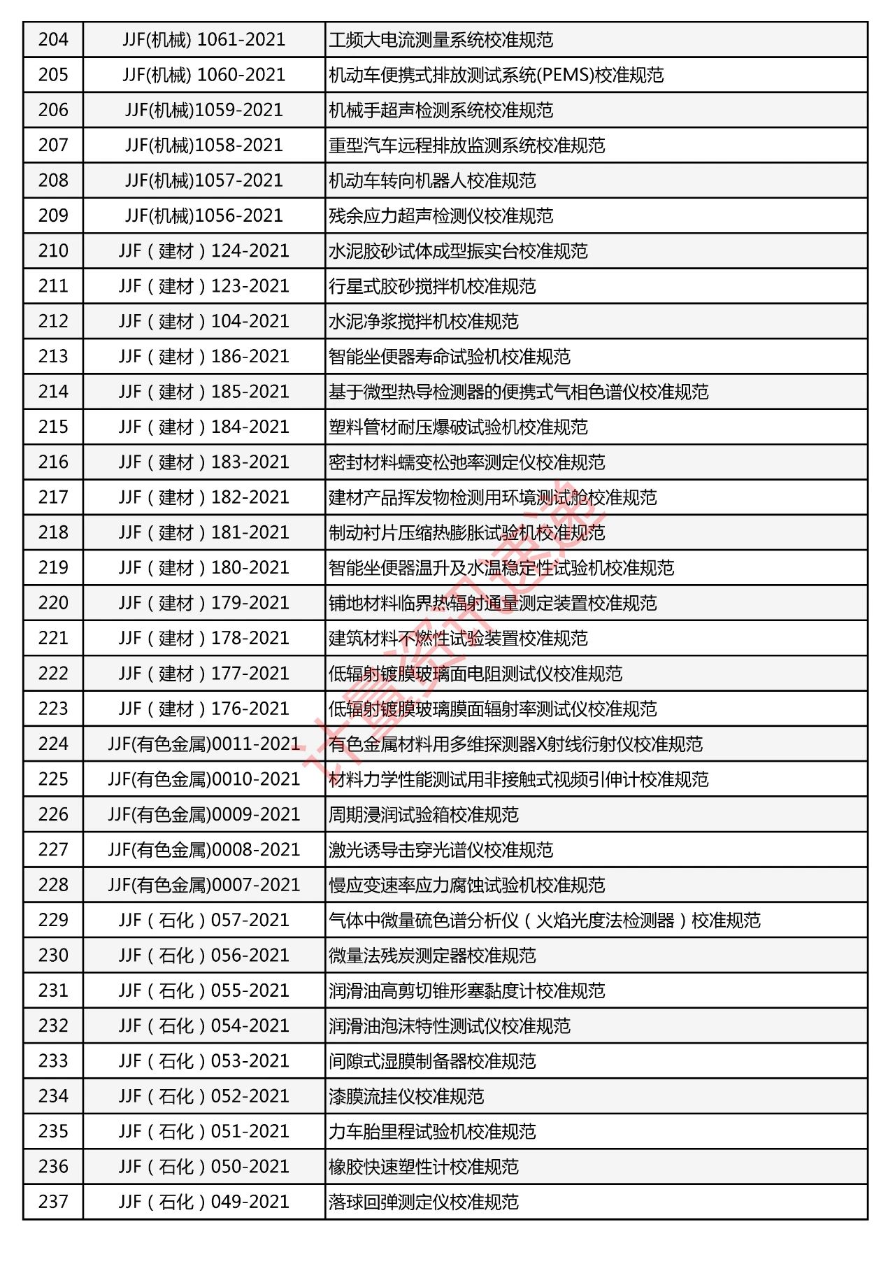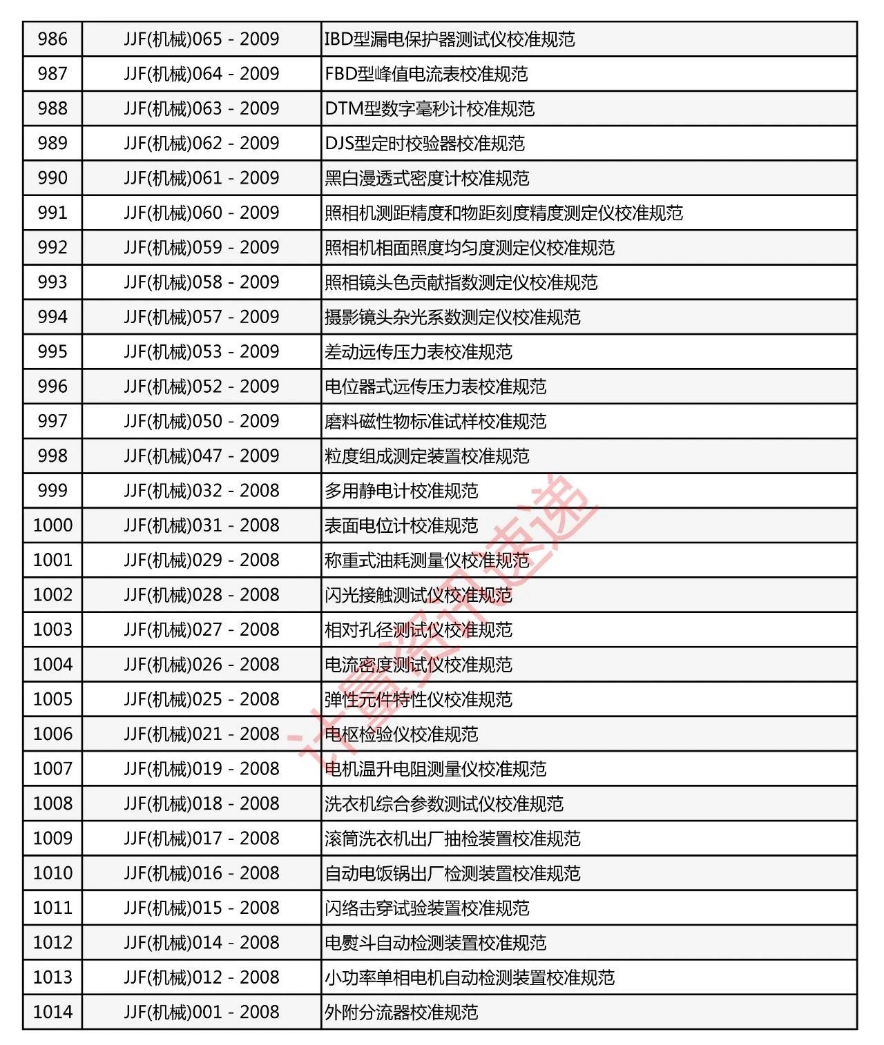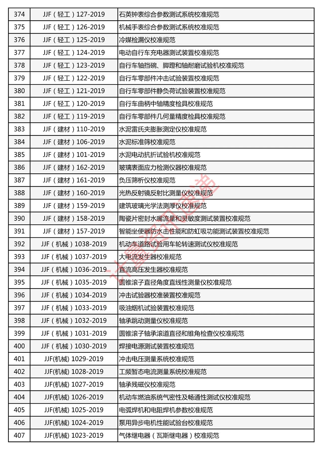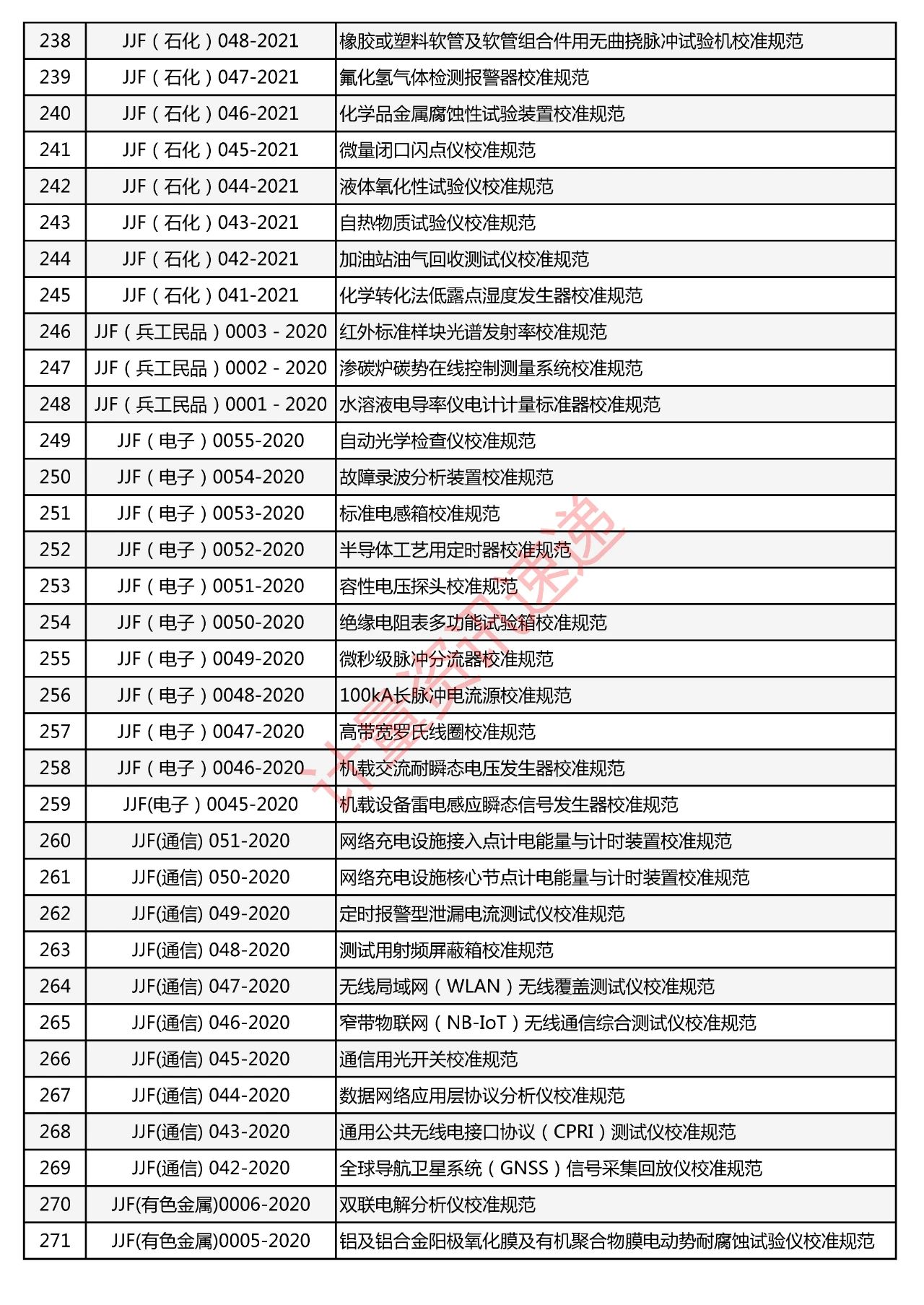 行業(yè)計(jì)量技術(shù)規(guī)范匯總一覽表