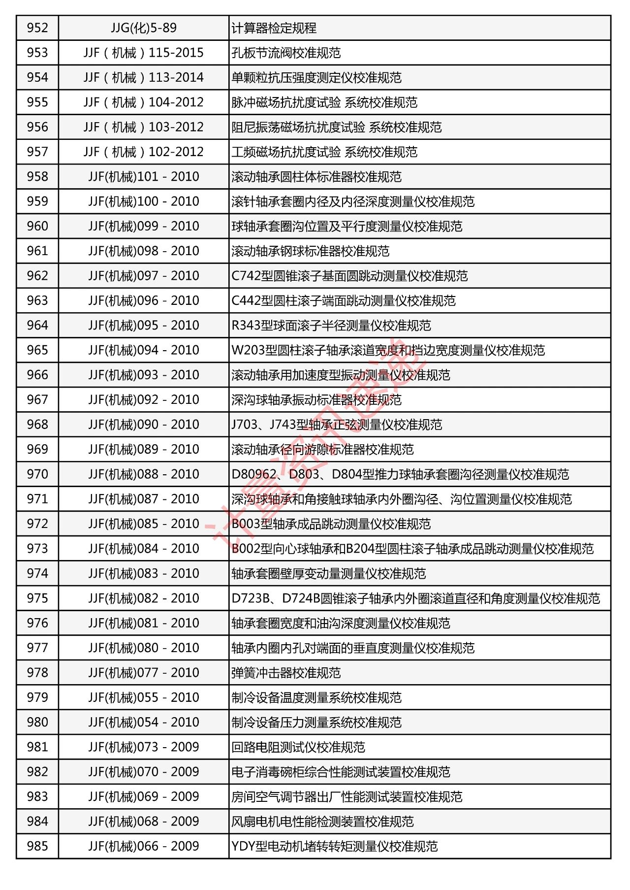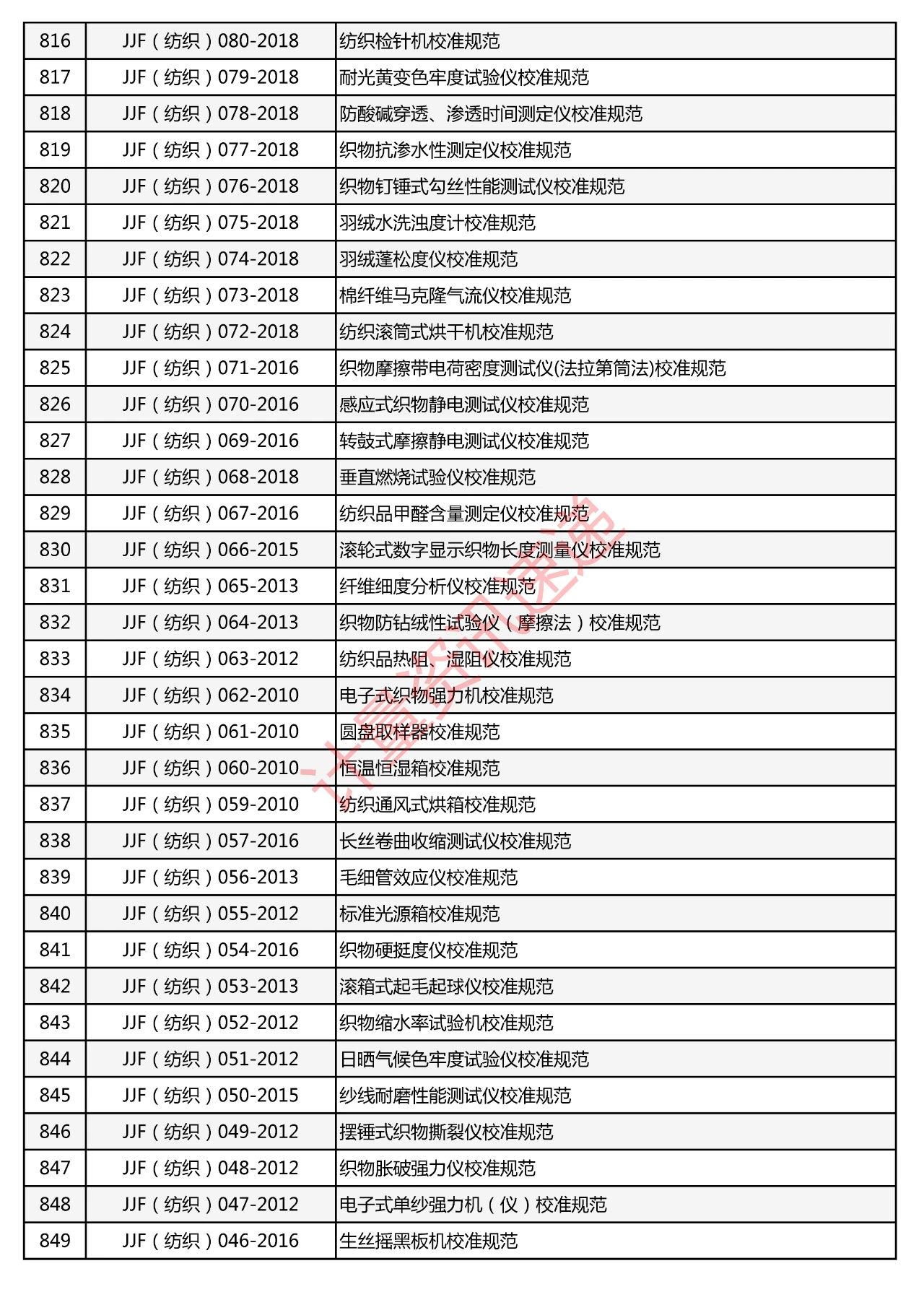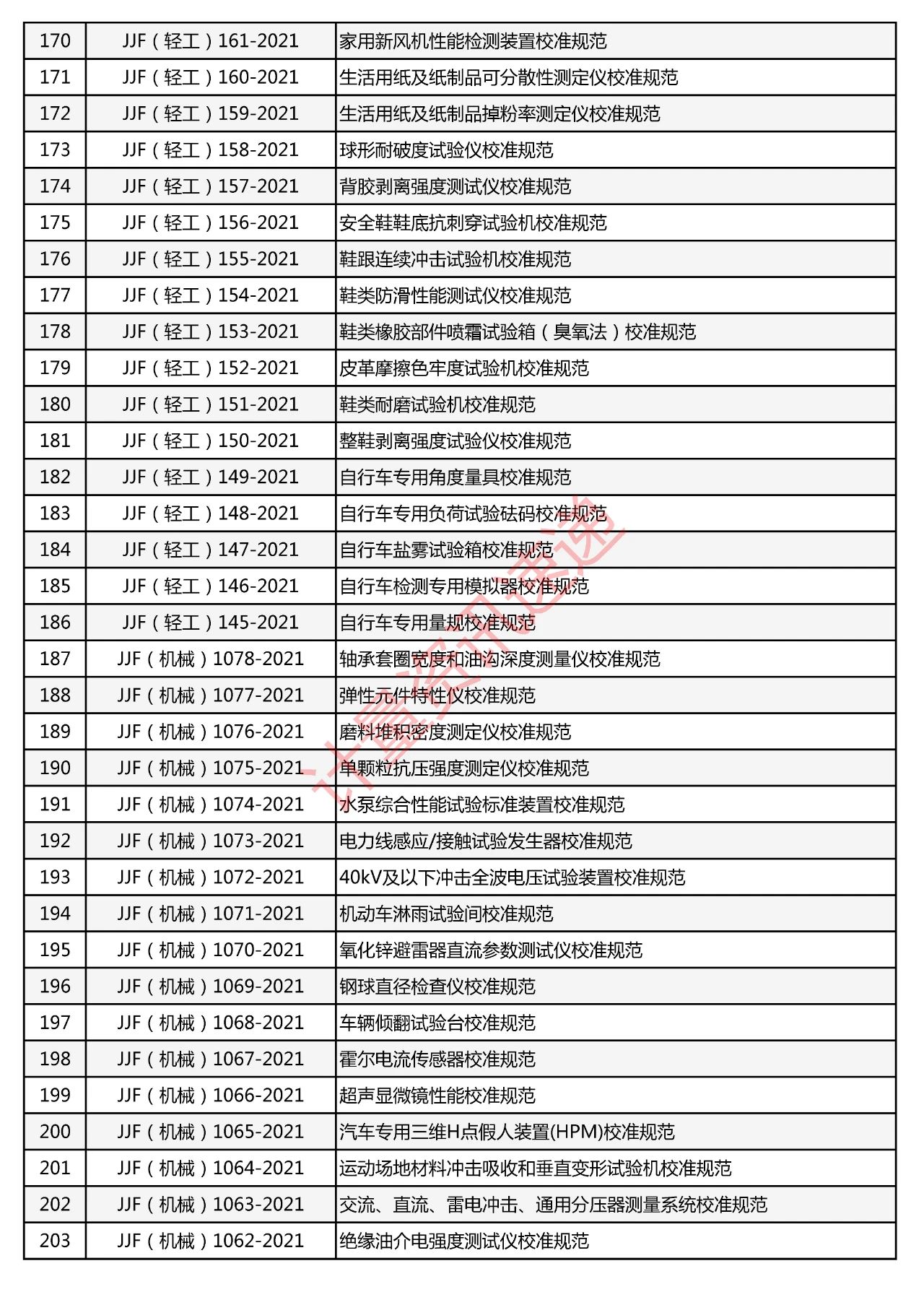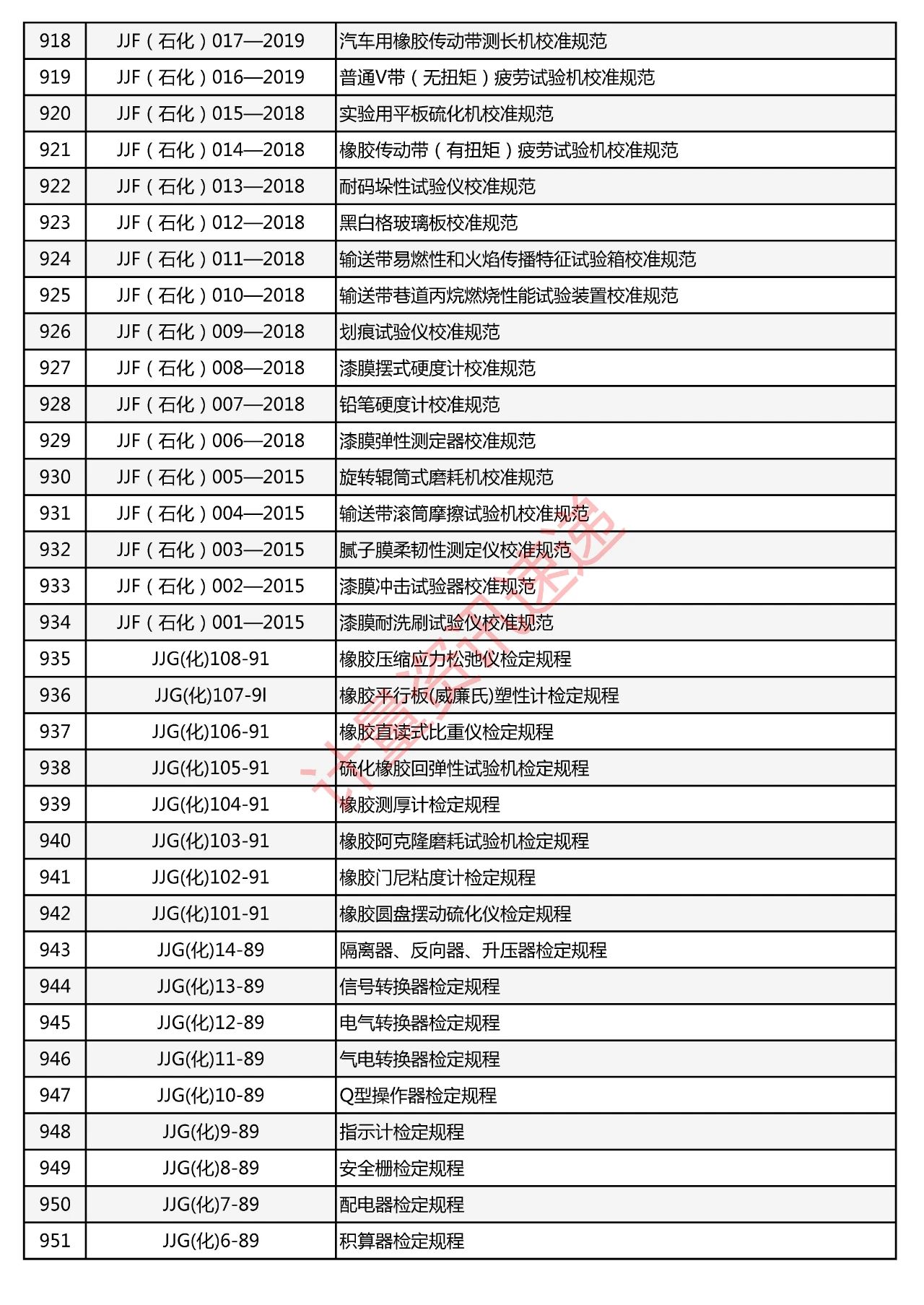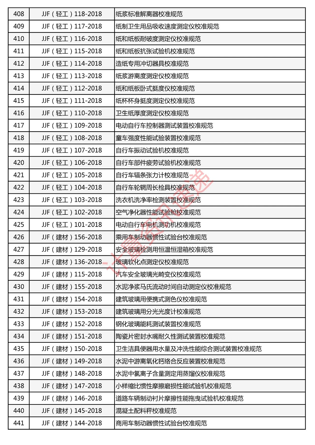 行業(yè)計(jì)量技術(shù)規(guī)范匯總一覽表