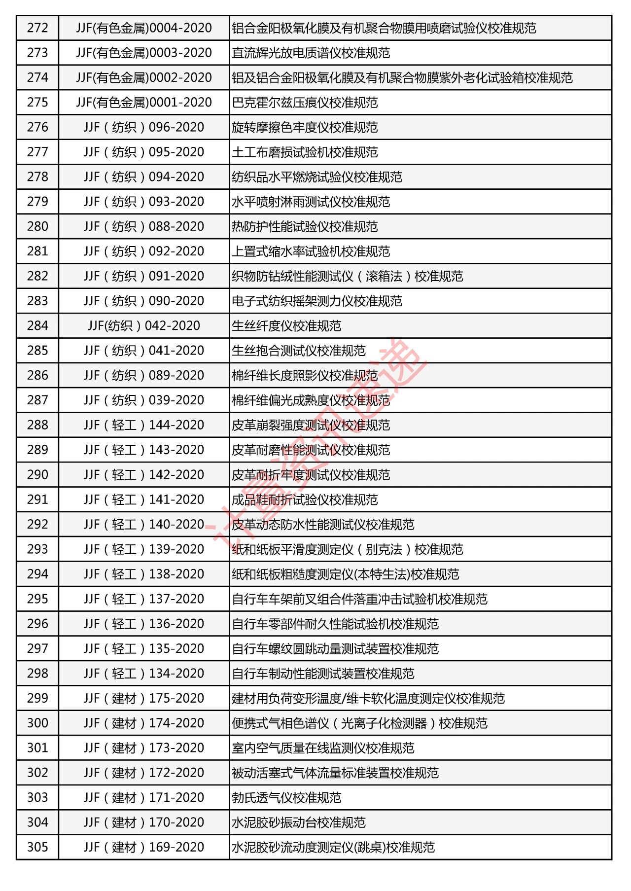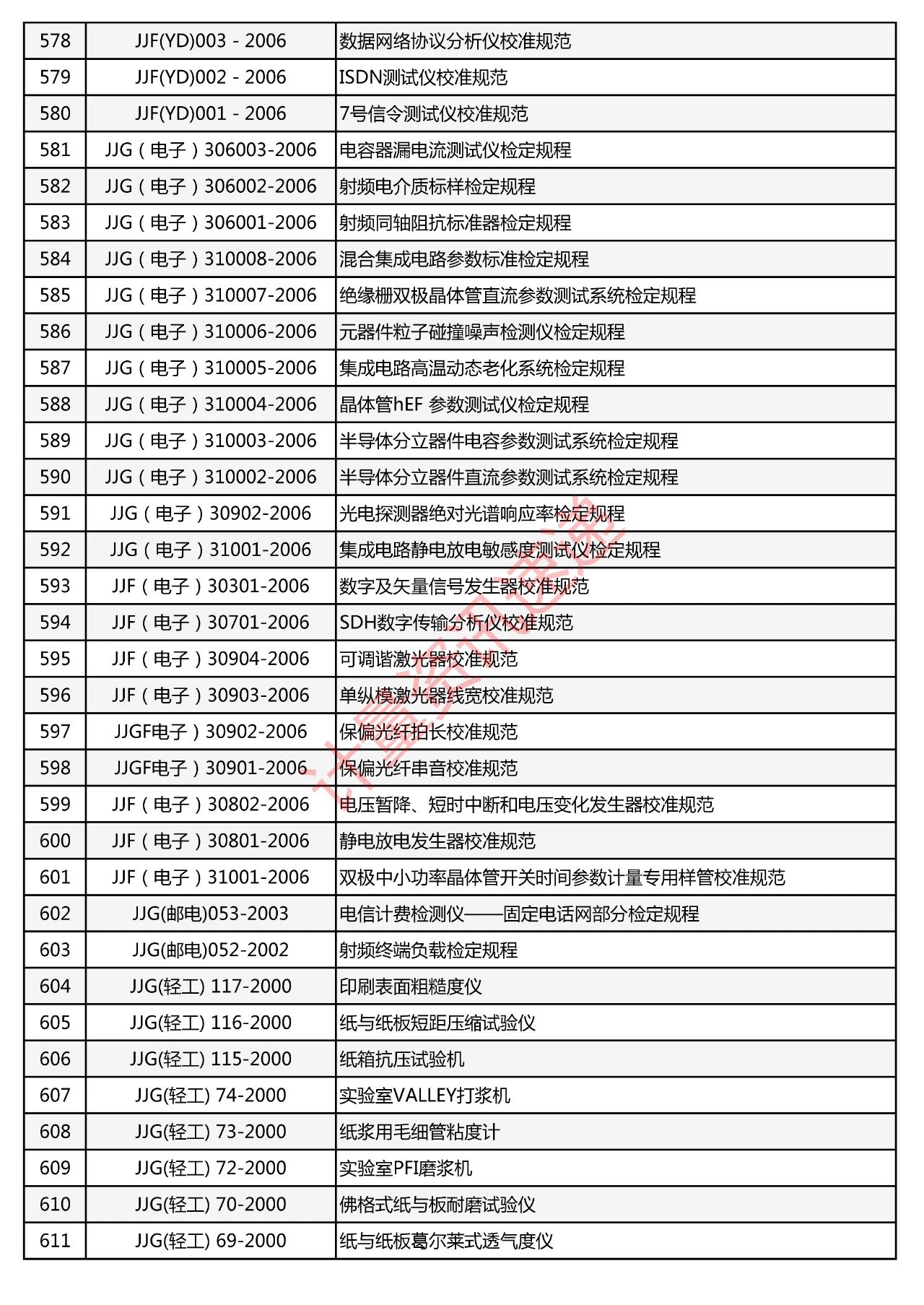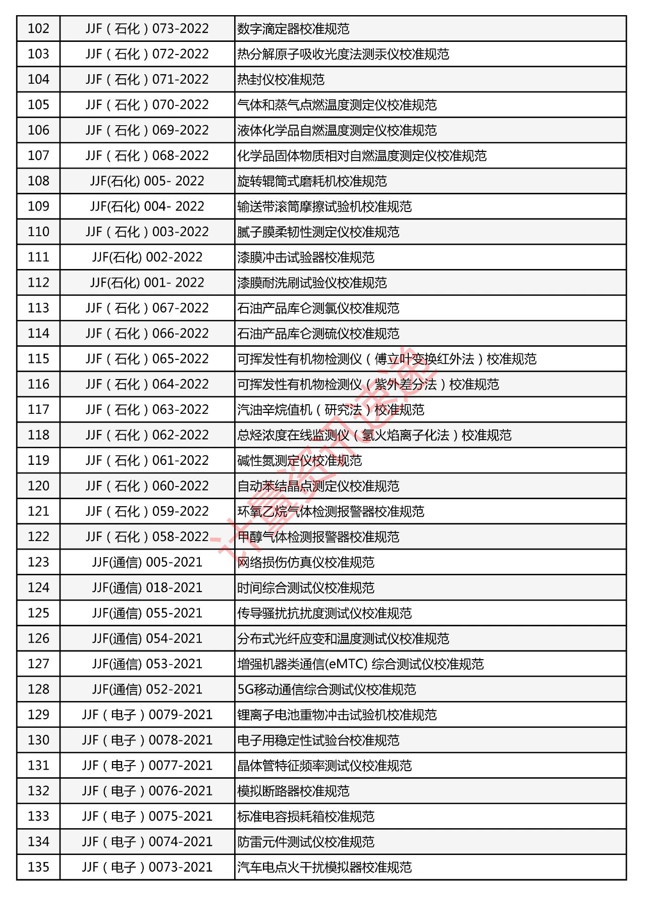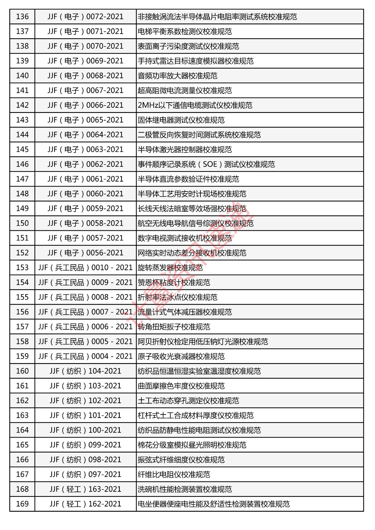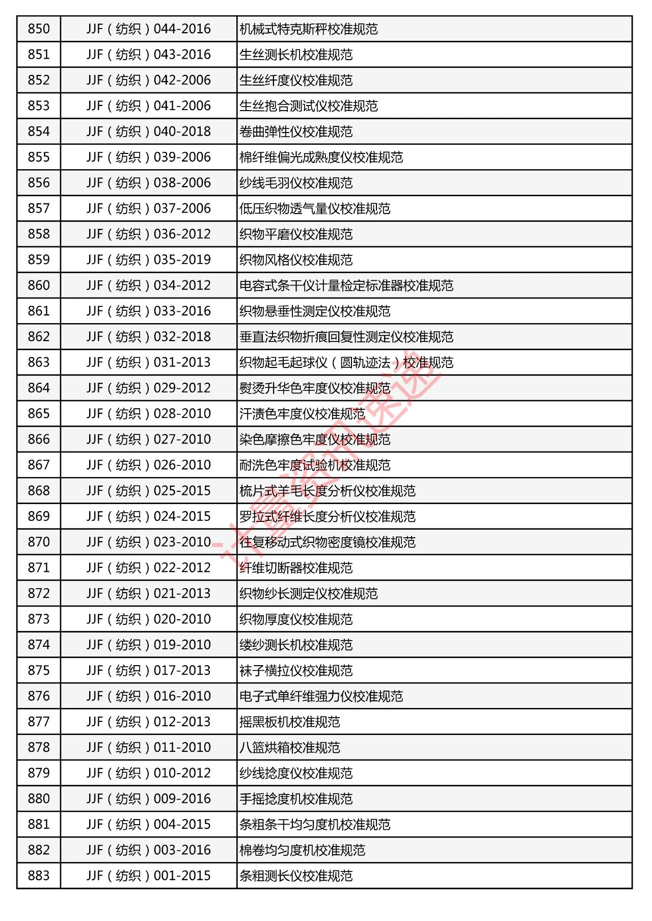 行業(yè)計(jì)量技術(shù)規(guī)范匯總一覽表