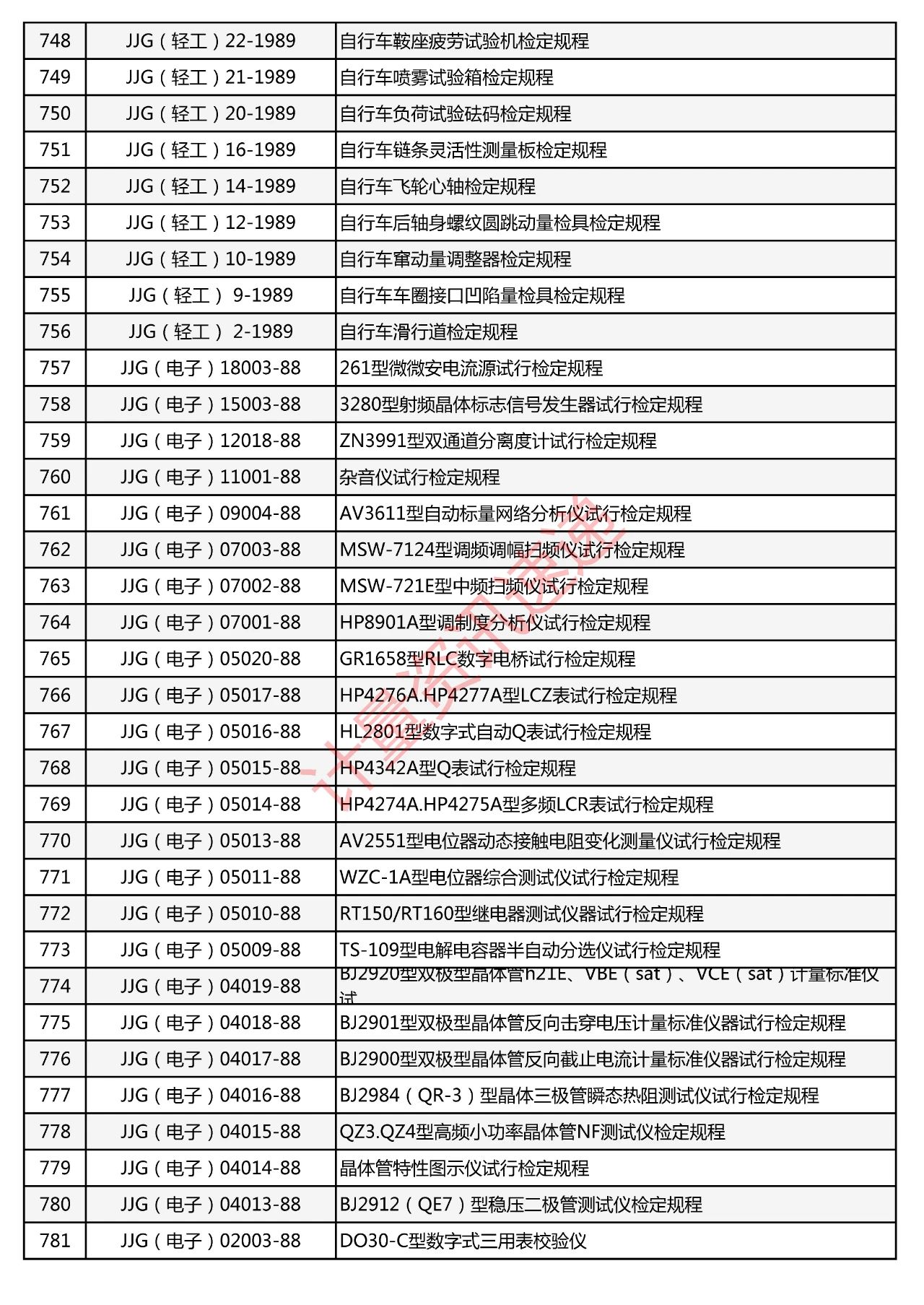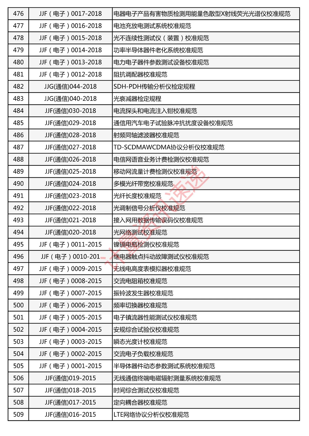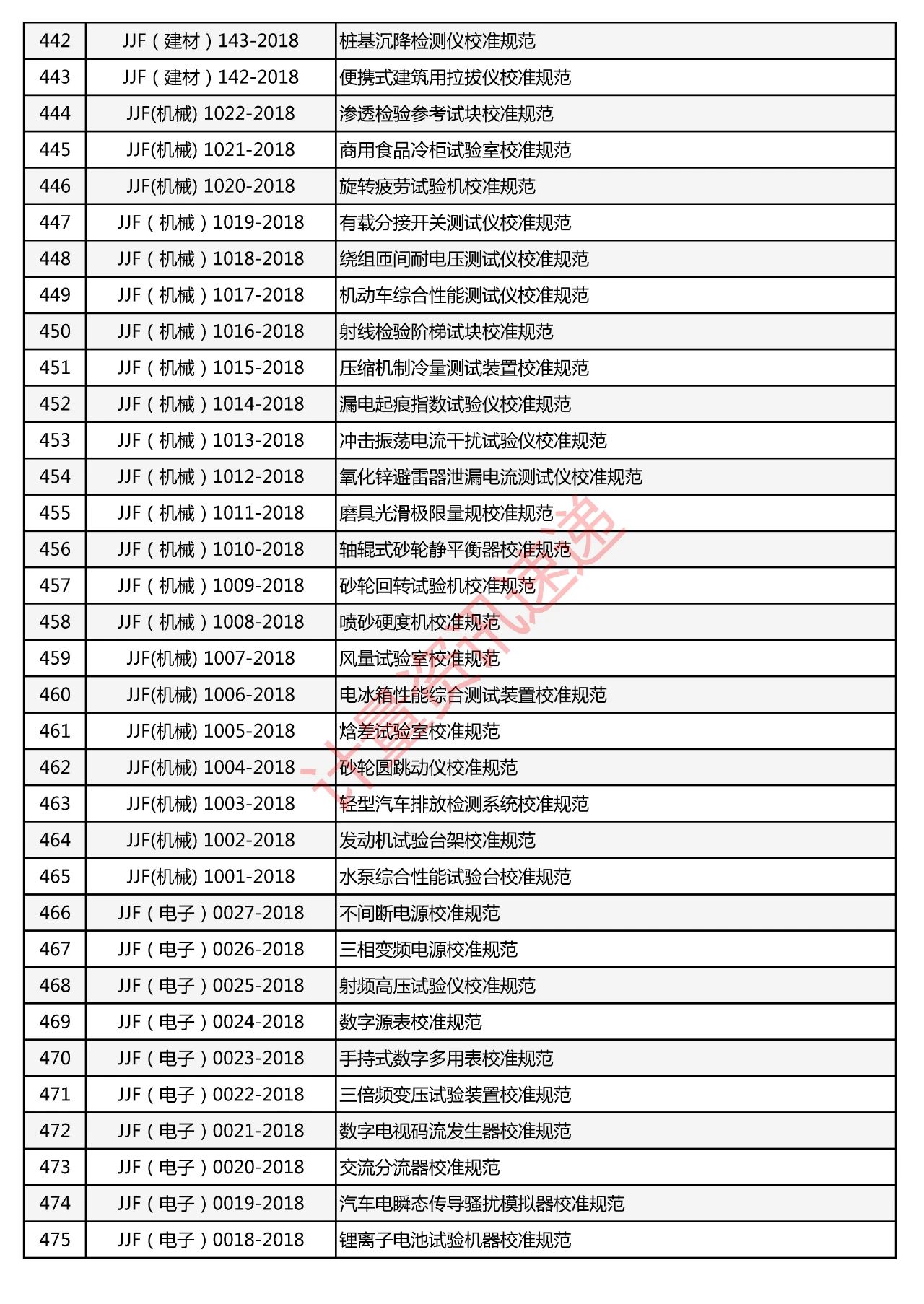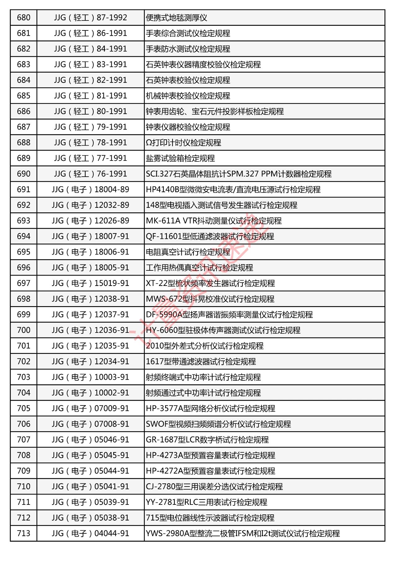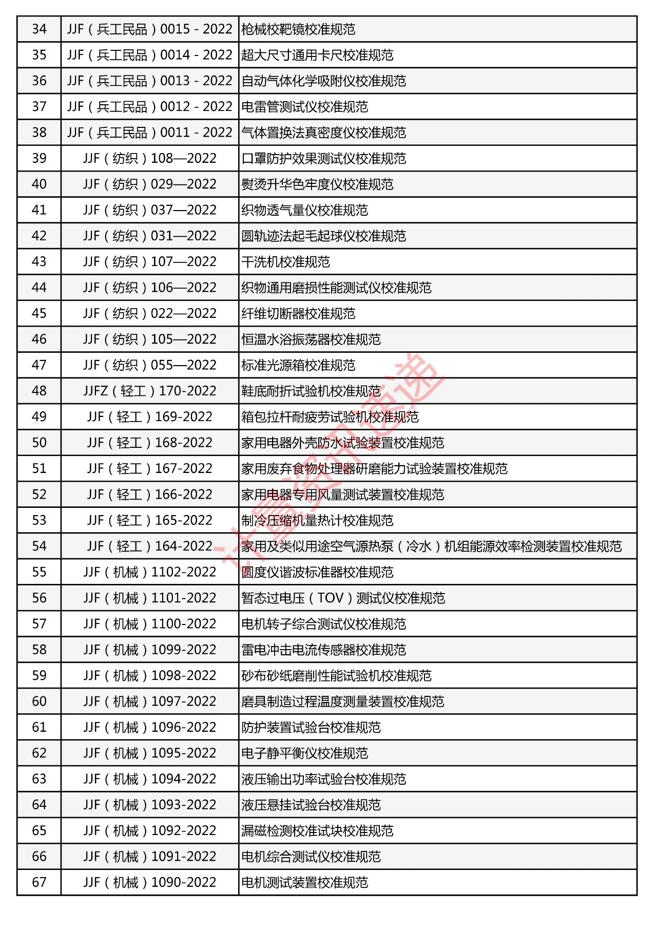 行業(yè)計(jì)量技術(shù)規(guī)范匯總一覽表