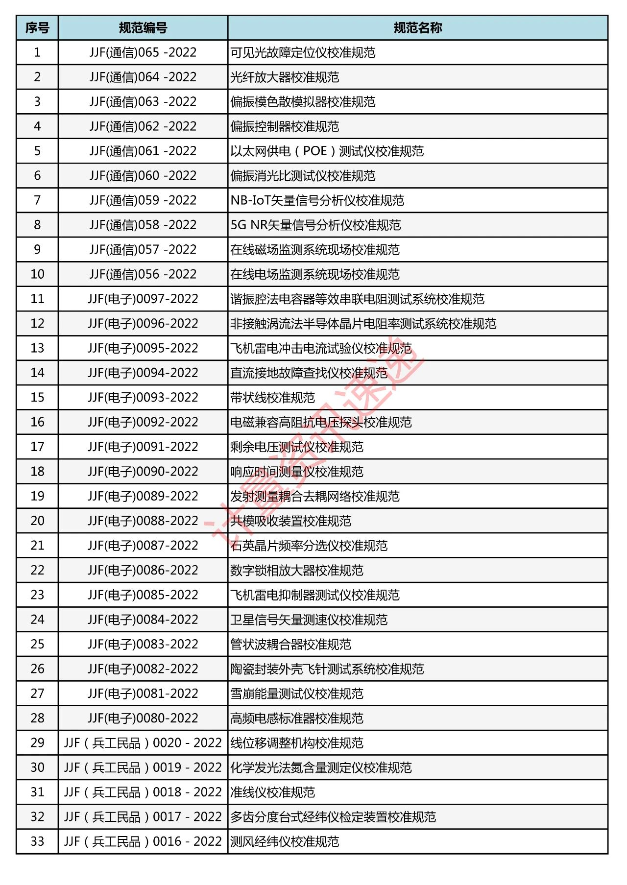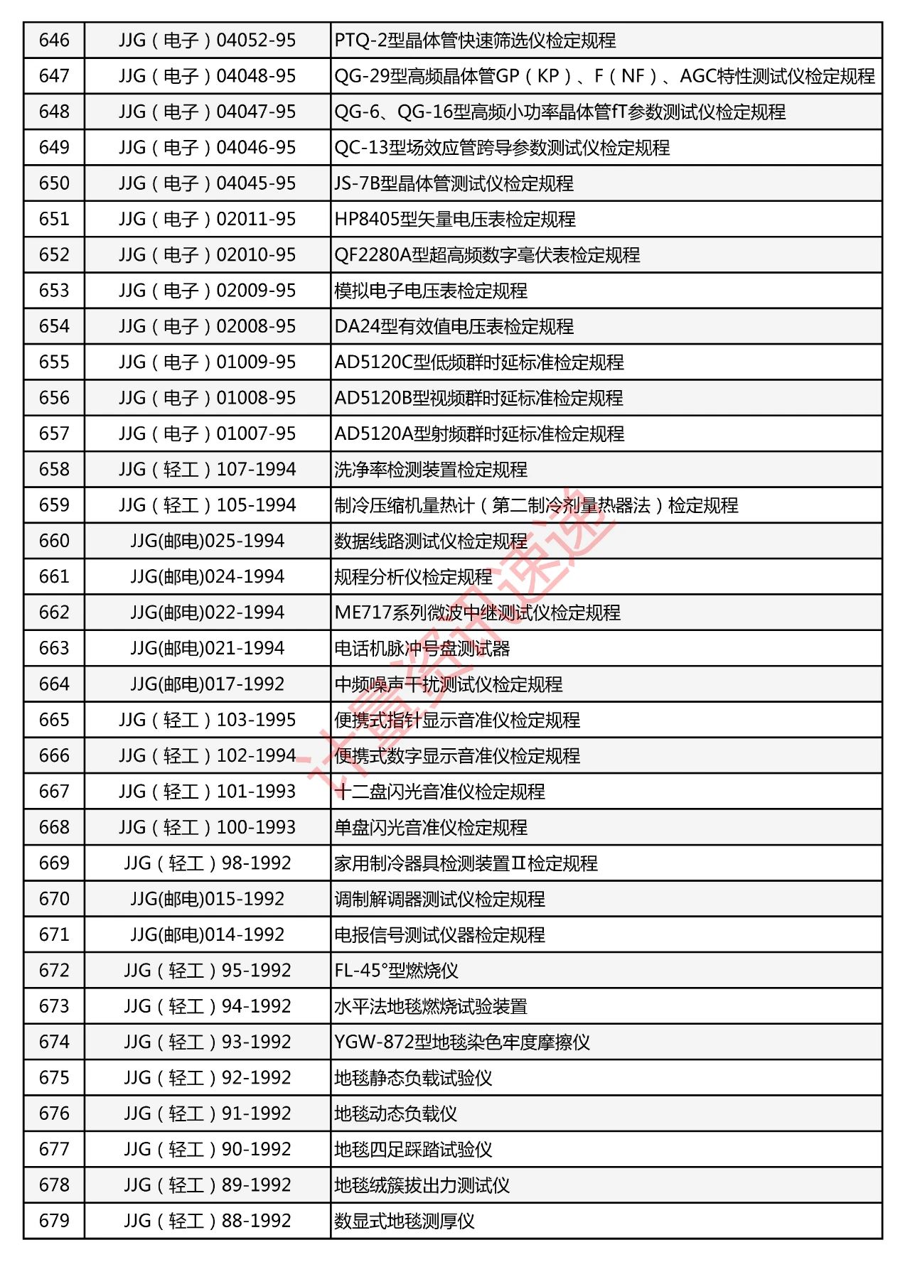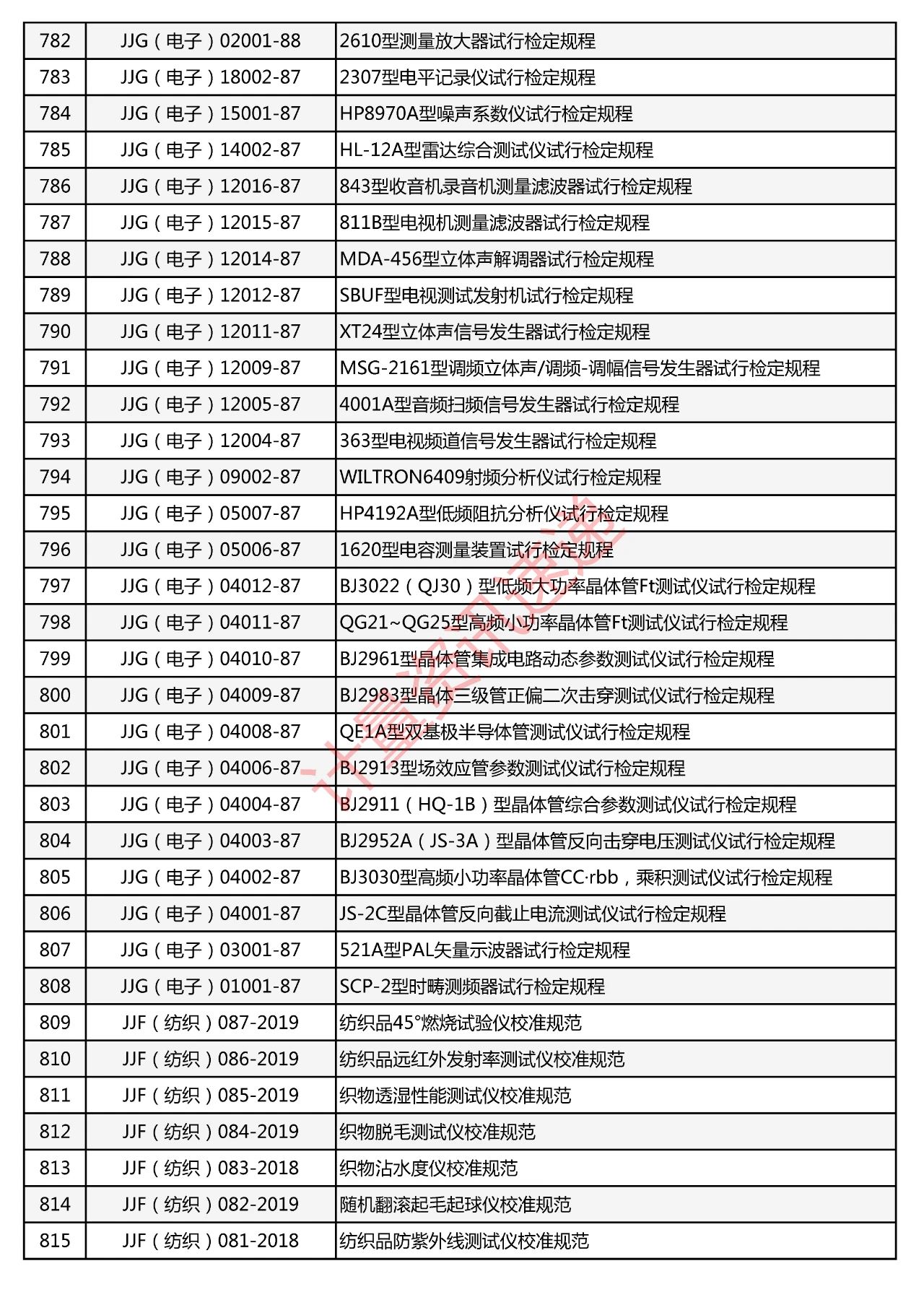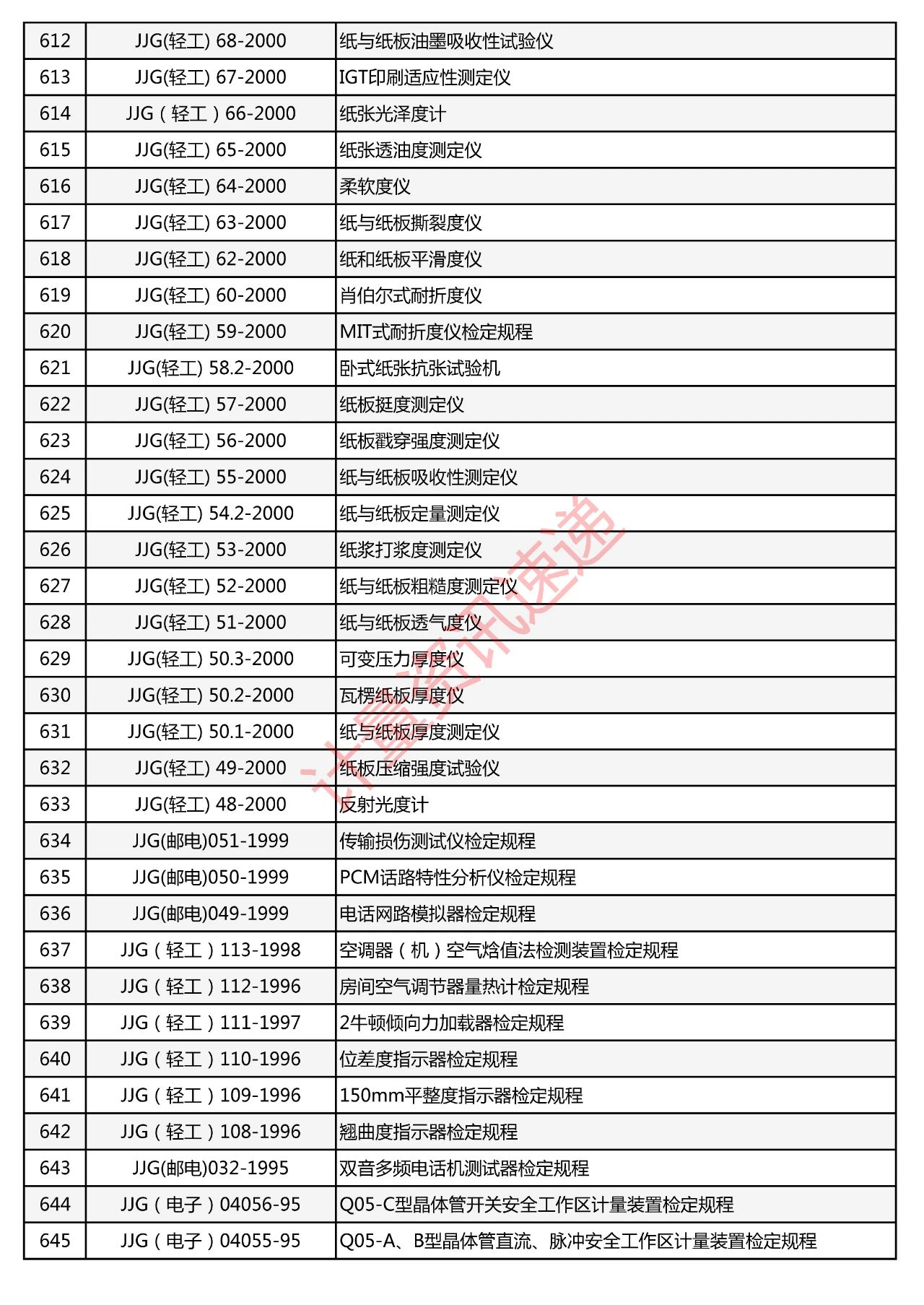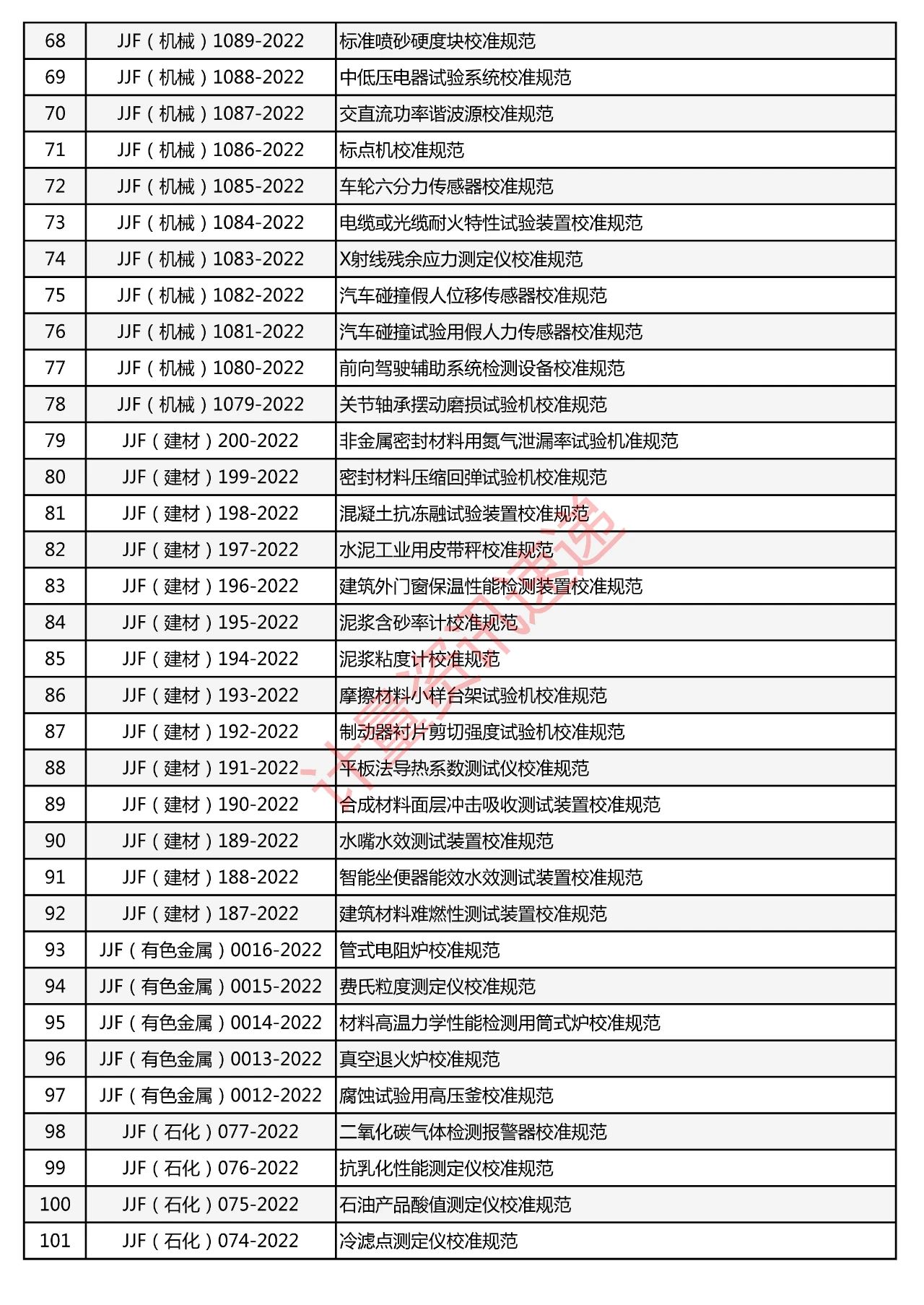 行業(yè)計(jì)量技術(shù)規(guī)范匯總一覽表
