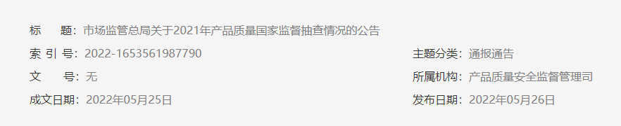 產(chǎn)品質(zhì)量國家監(jiān)督抽查情況的公告